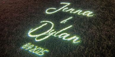 Illuminate your venue's walls, trees, architechural features, and transform the space with your wedding colors to add ambiance and elegance.